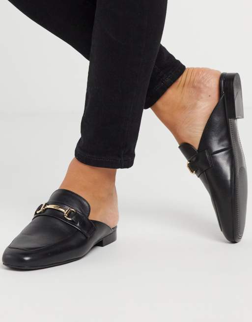 Steve Madden wintour leather metal trim flat mules in black