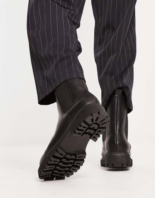 London Rebel X wide fit chunky mid calf chelsea boots in black
