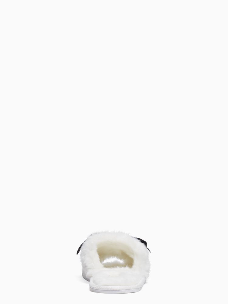 Kate Spade Sz 7 B Faux Shearling House Slippers White With Black Bow Detail CZ