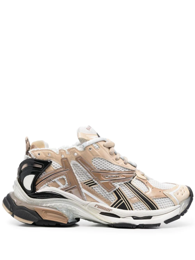 Balenciaga Runner Gold Distressed Panelled Mesh Trainers In Beige