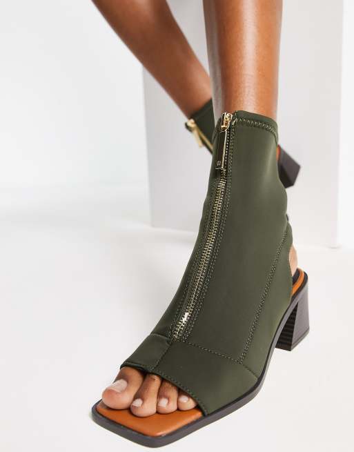 Khaki Stretch Peep Toe Heeled Boots Queen Rebellious Fashion