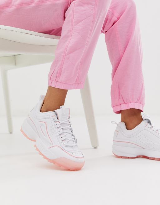 Pale clearance pink fila, Fila Disruptor II Trainers in white with ice pink sole clearance
