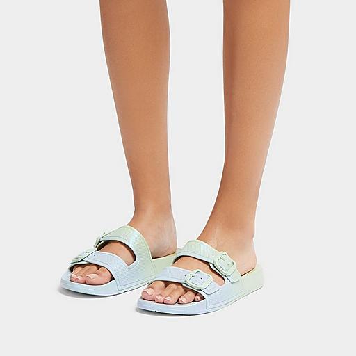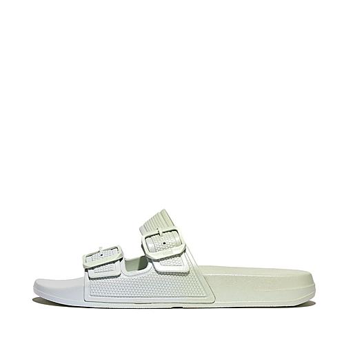 Double buckle iridescent clearance slide sandals, Trillium Iridescent Silver Two Strap Sandals CoolSprings Galleria clearance