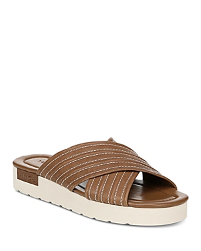 Vince Women s Camden Leather Platform Slide Sandals In Saddle