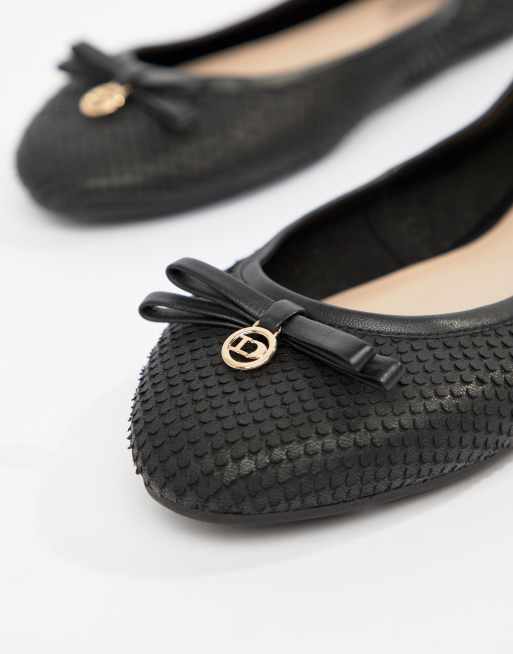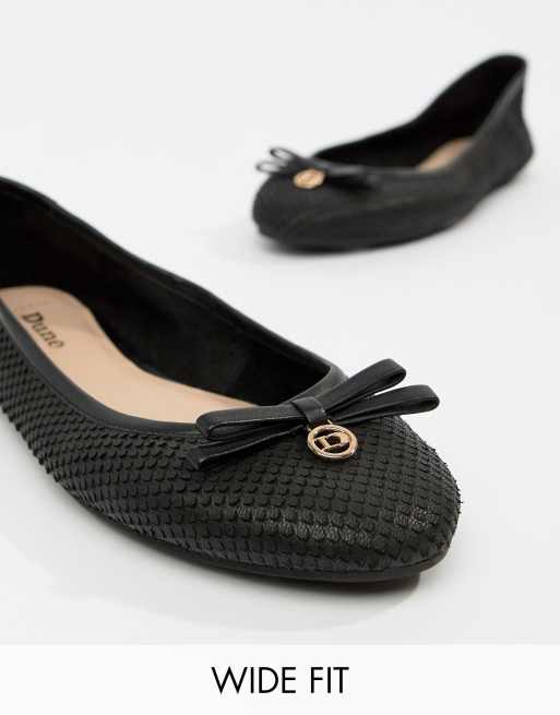 Dune London Wide Fit Harps Black Leather Ballet Flat Shoes