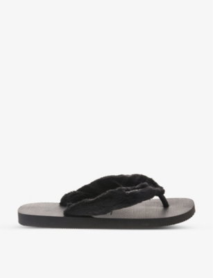 HAVAIANAS Top Home Fluffy logo embossed faux fur and rubber flip