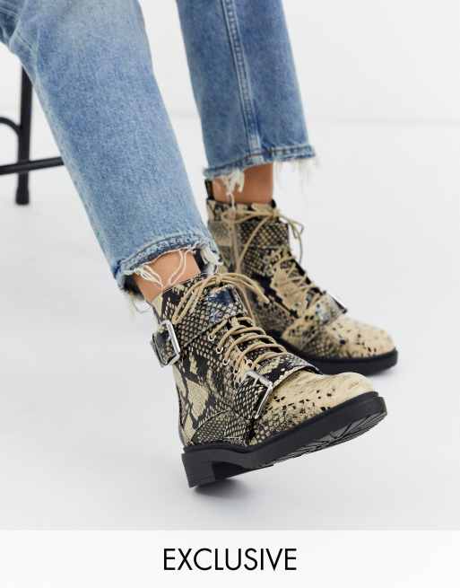 Miss Selfridge Ladies Snakeskin Print Buckle Hiker Boots Size 5 6 SALE eBay