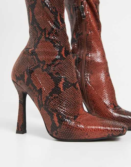 Simmi London Wide Fit Minar over the knee boots in brown snake