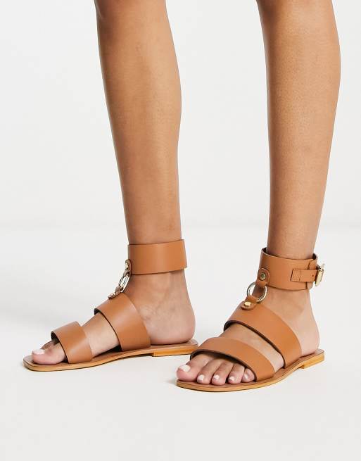 ASOS DESIGN Feline leather three part flat sandal in camel