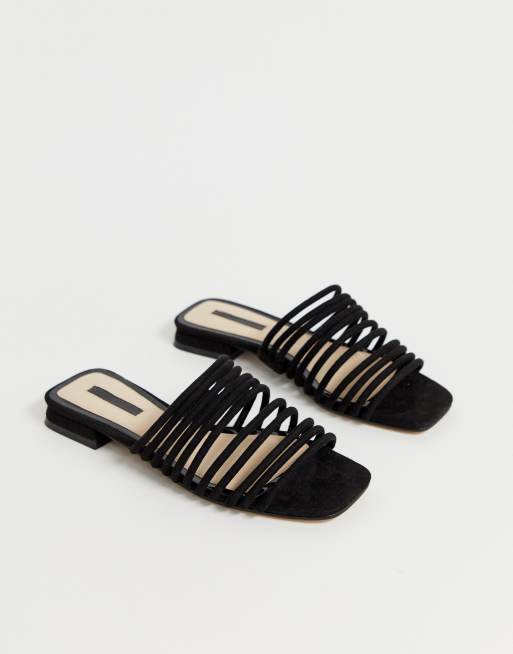 Miss Selfridge multi strap flat sandals in black ASOS