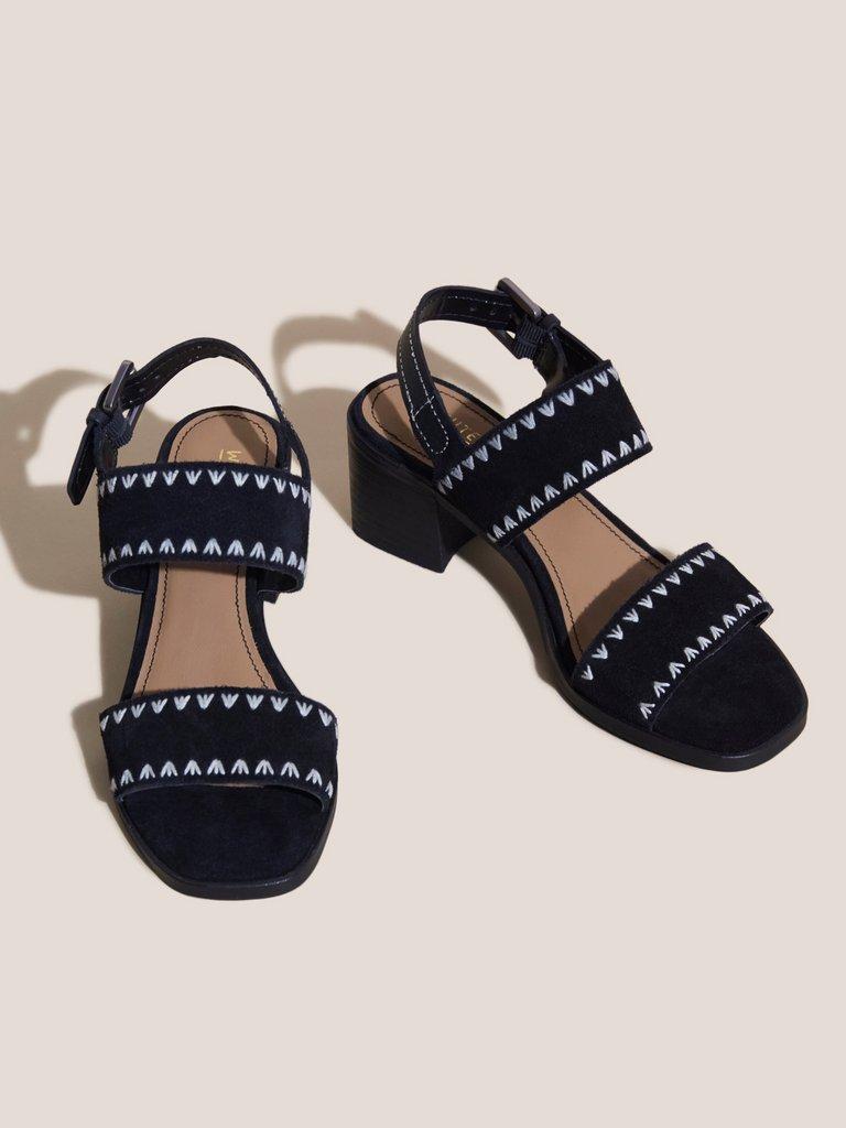 Whipstitch Block Heel Sandal in PURE BLACK White Stuff
