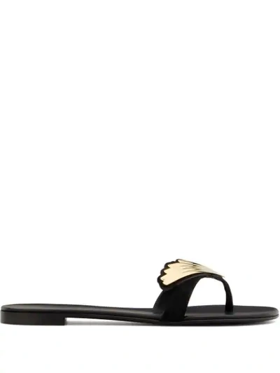 Giuseppe zanotti cruel clearance flat sandal, 2.0 Cruel Suede Sandals With Metallic Embellishment In Schwarz clearance