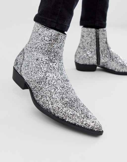 ASOS DESIGN cuban heel western chelsea boots in silver glitter