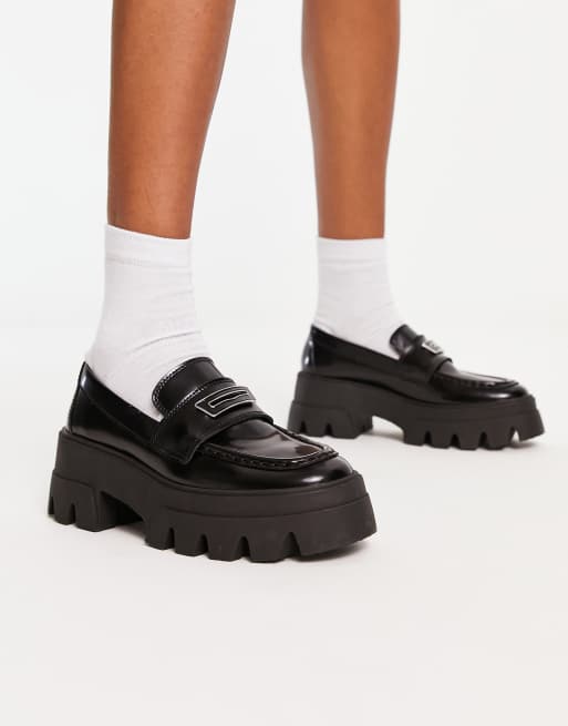 ALDO Grandwalk chunky cleated sole loafers in black ASOS