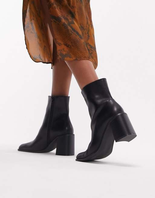 Topshop Mae block heel ankle boot in black