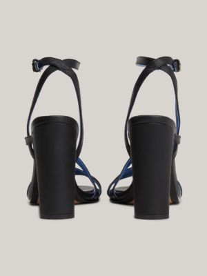 TH Monogram Leather High Heel Strap Sandals Black Tommy Hilfiger