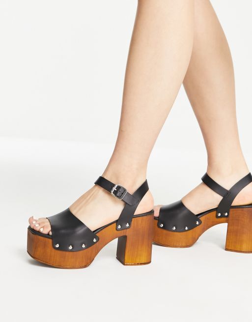 Topshop Wide Fit Willa mid heel clog with tie in black