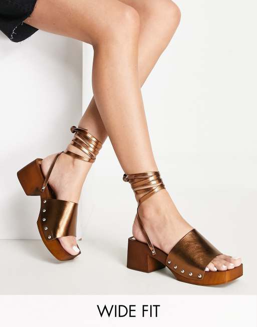 Topshop Wide Fit Willa mid heel clog with tie in bronze
