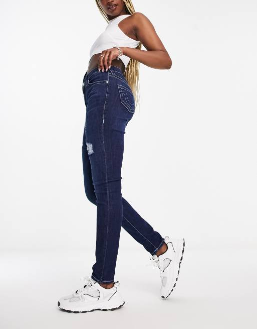 True Religion halle mid rise distressed skinny jeans in dark wash