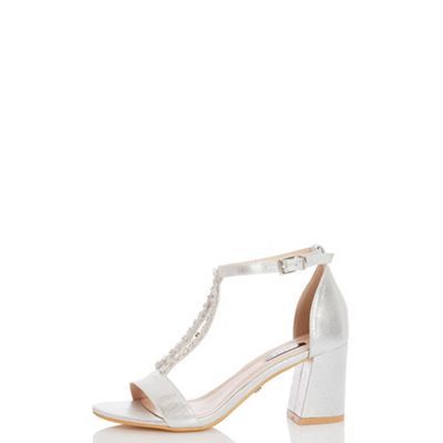 Quiz Bridal Silver Diamante T Bar Heeled Sandals 8 Sandals