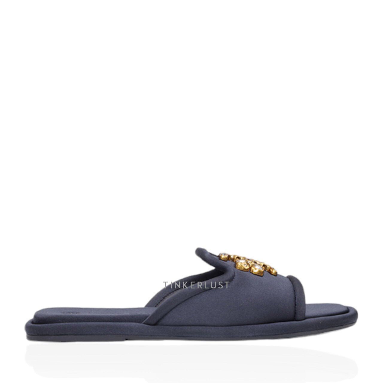 sepatu sandals Tory Burch Jeweled Slides in Perfect Navy Satin