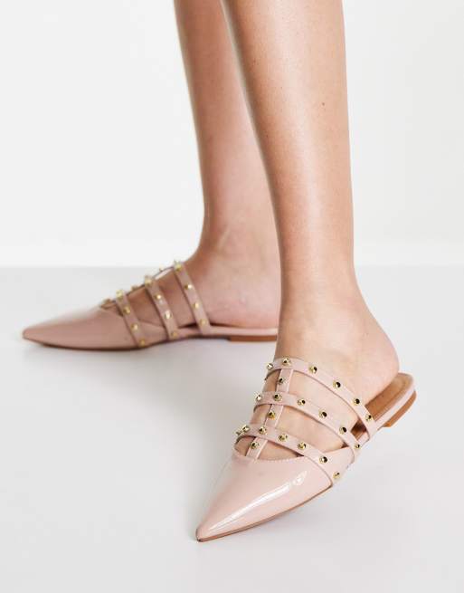 ASOS DESIGN Liquorish studded flat mules in beige patent