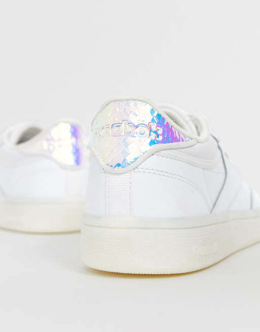 Reebok Club C 85 Trainers in White with iridescent back