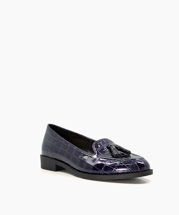 Global Navy Croc Effect Tasselled Loafers Dune London
