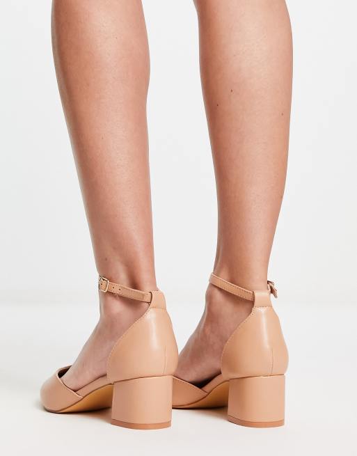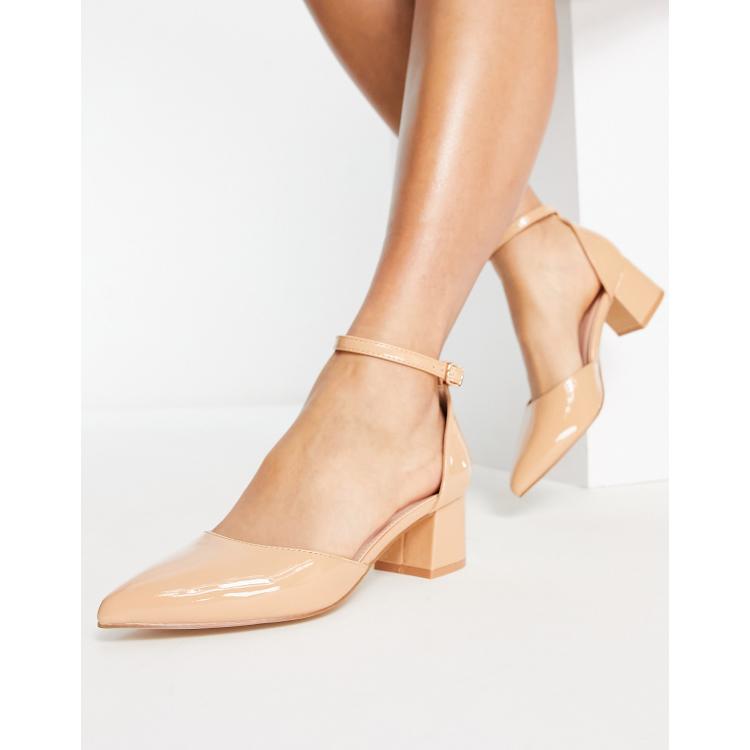 Truffle Collection Wide Fit pointed mid block heel shoes in beige