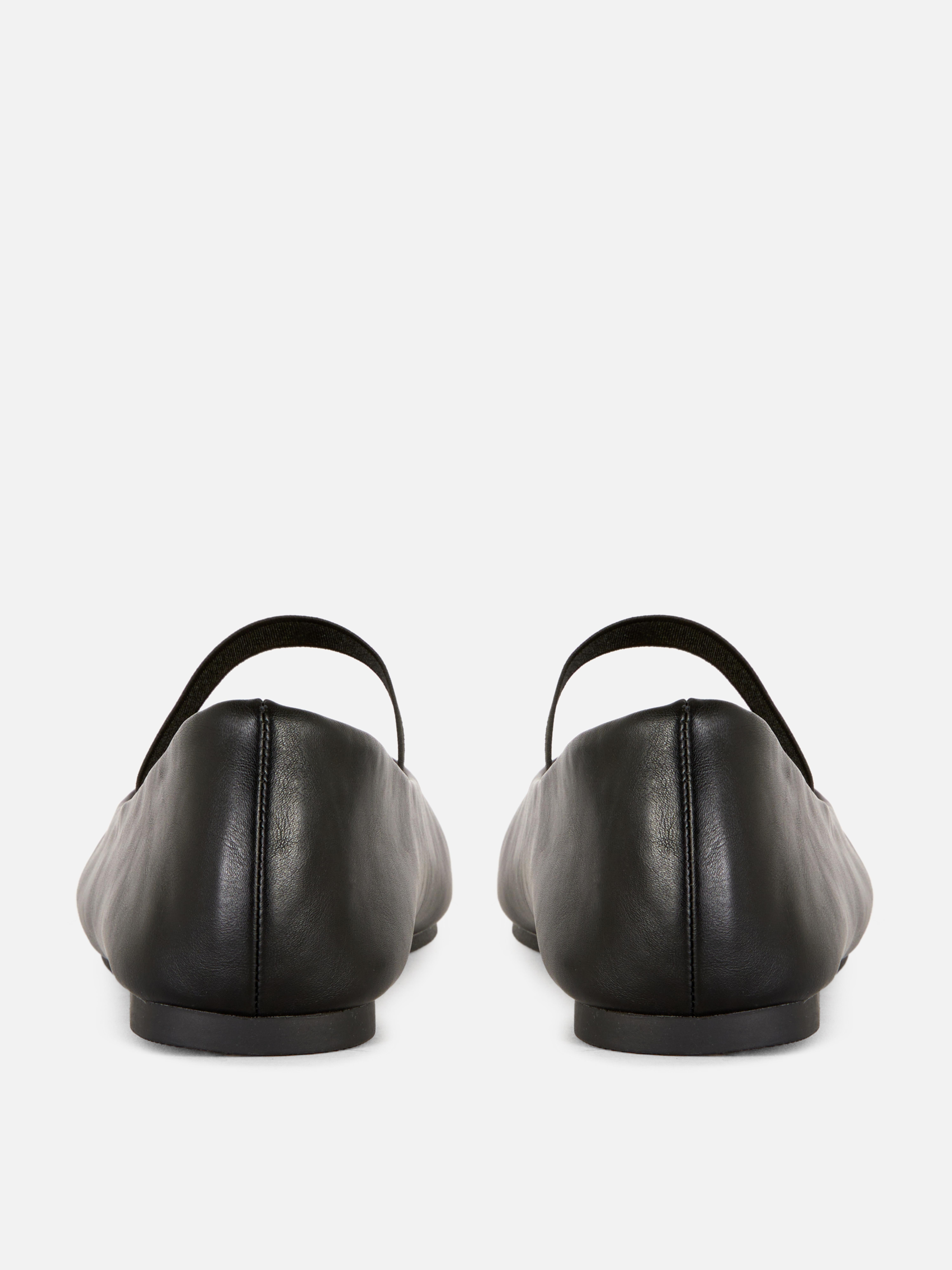 ASOS DESIGN Wide Fit Los Angeles ruched ballet with elastic strap in matte black