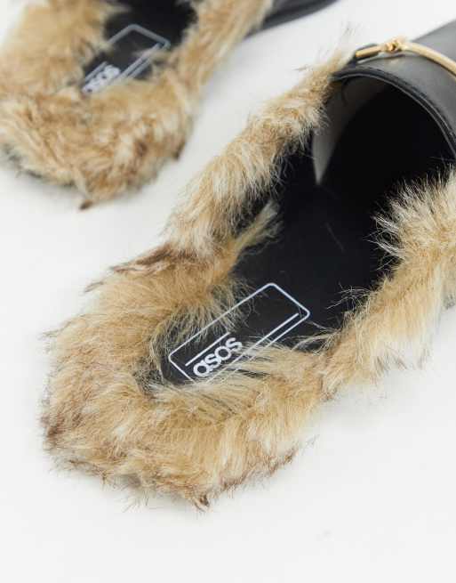 Faux fur loafer clearance slides, ASOS DESIGN backless mule loafer in black faux leather with faux fur BLACK clearance