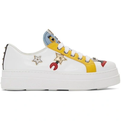Prada clearance robot sneakers, PRADA Robot Queen patchwork embellished white platform sneaker clearance