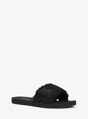 Mk logo faux clearance shearling slide, Michael Kors Scarlett faux fur Slide Sandals Farfetch clearance