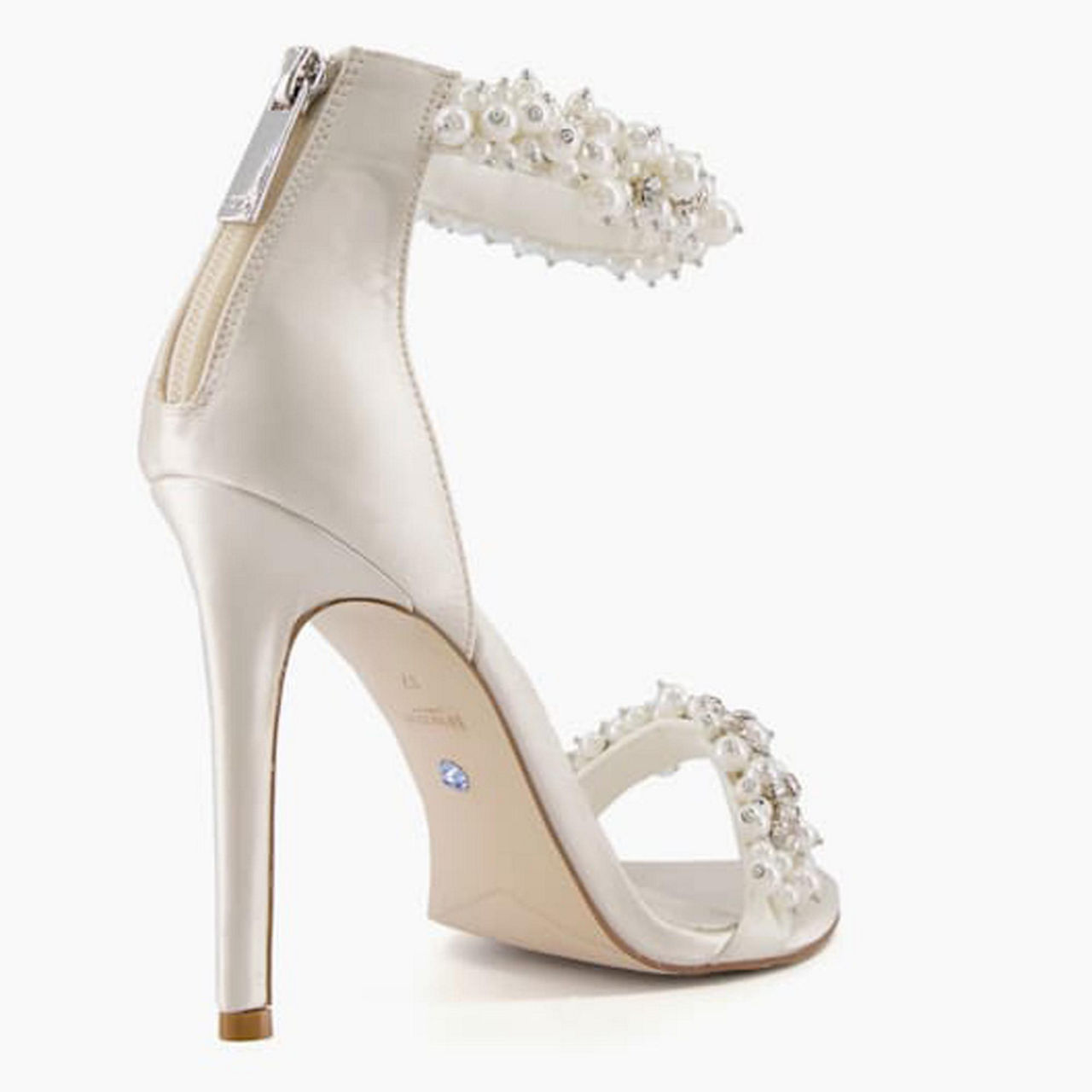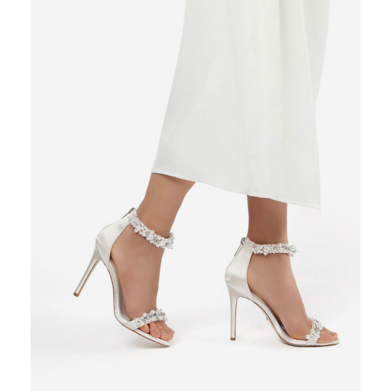 DUNE LONDON Marriage Satin Beaded Ankle Strap Wedding Shoes White