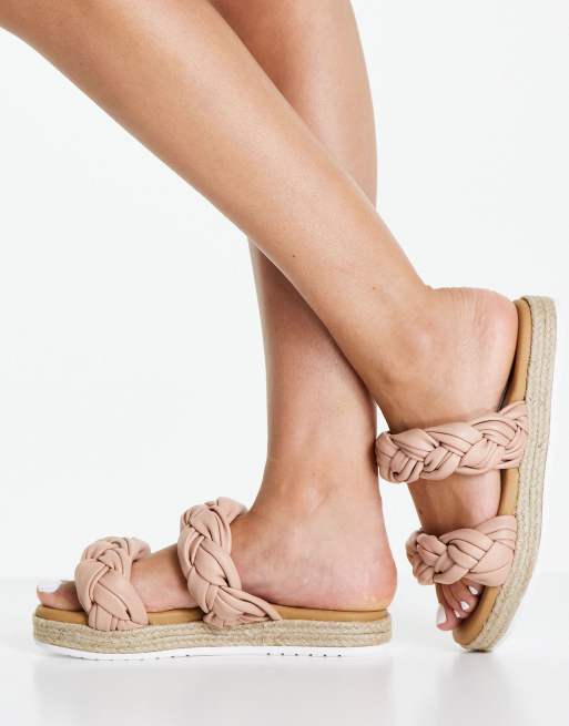 Steve Madden Kirsi double plaited espadrille slides in blush