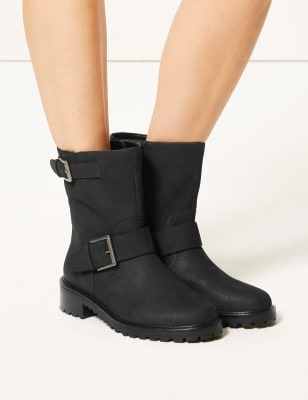 M&s ladies biker clearance boots, Leather Biker Flat Ankle Boots M S Collection M S clearance