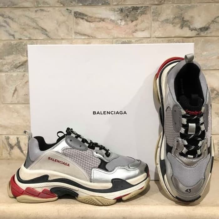 Balenciaga Triple S Grey Silver Red Un Authorized Premium Original