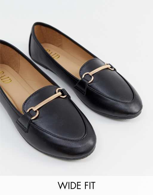 RAID Wide Fit Viera black leather look snaffle detail flat shoes