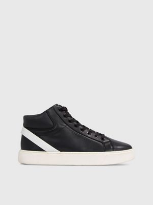 Mens leather high clearance top sneakers, Leather Fine Cleat High Top Trainers Blue Tommy Hilfiger clearance