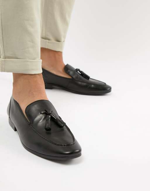 Silver Street tassel loafers in black leather ASOS