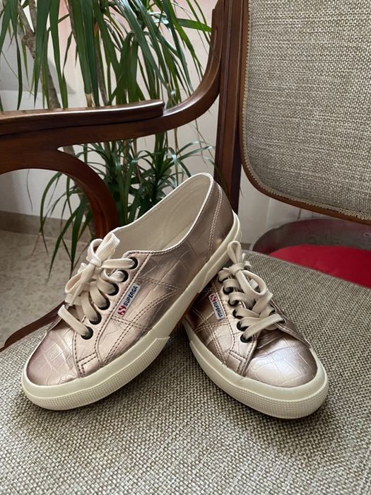 Superga clearance gold 39, Metaliczne trampki Superga sk ra krokodyla rose gold 39 wk adka clearance