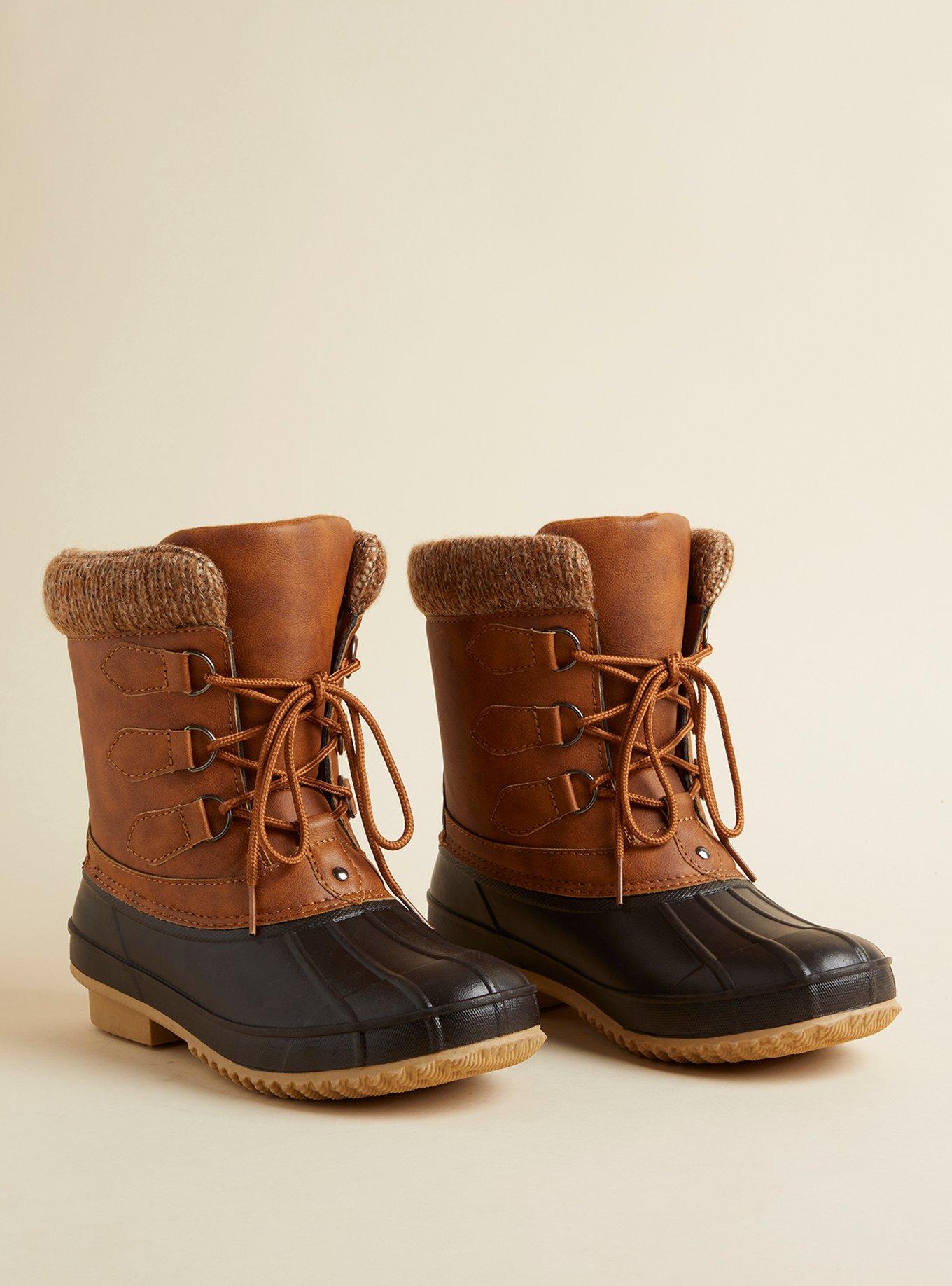 Sweater Cuff Lace Up Duck Boot in Black Get great deals at FabKids