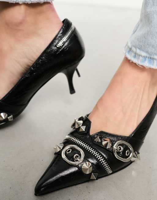 Jeffrey Campbell Roxine kitten heeled shoe with hardware in black