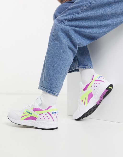 Reebok Pyro Leather Trainers in white and yellow ASOS