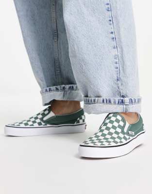 Vans Classic Slip On checkerboard trainers in green ASOS