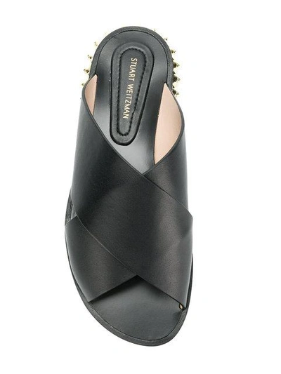 Stuart Weitzman Rockrose Leather Slides In Black ModeSens