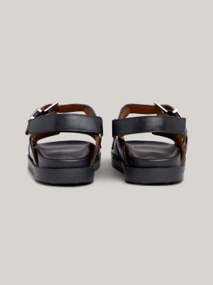 TH Monogram Hook And Loop Leather Sandals Black Tommy Hilfiger