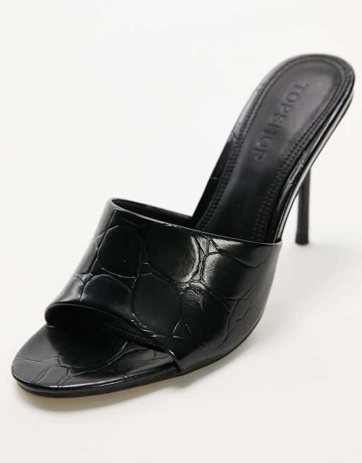 Topshop Wide Fit Fia almond toe heeled mule in black