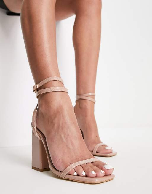 London Rebel Wide Fit embellished bridal block heel sandal in ivory