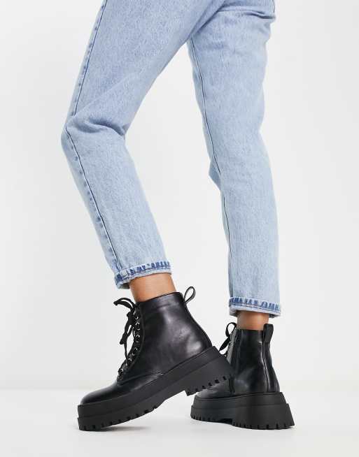 London Rebel chunky lace up ankle boots in black